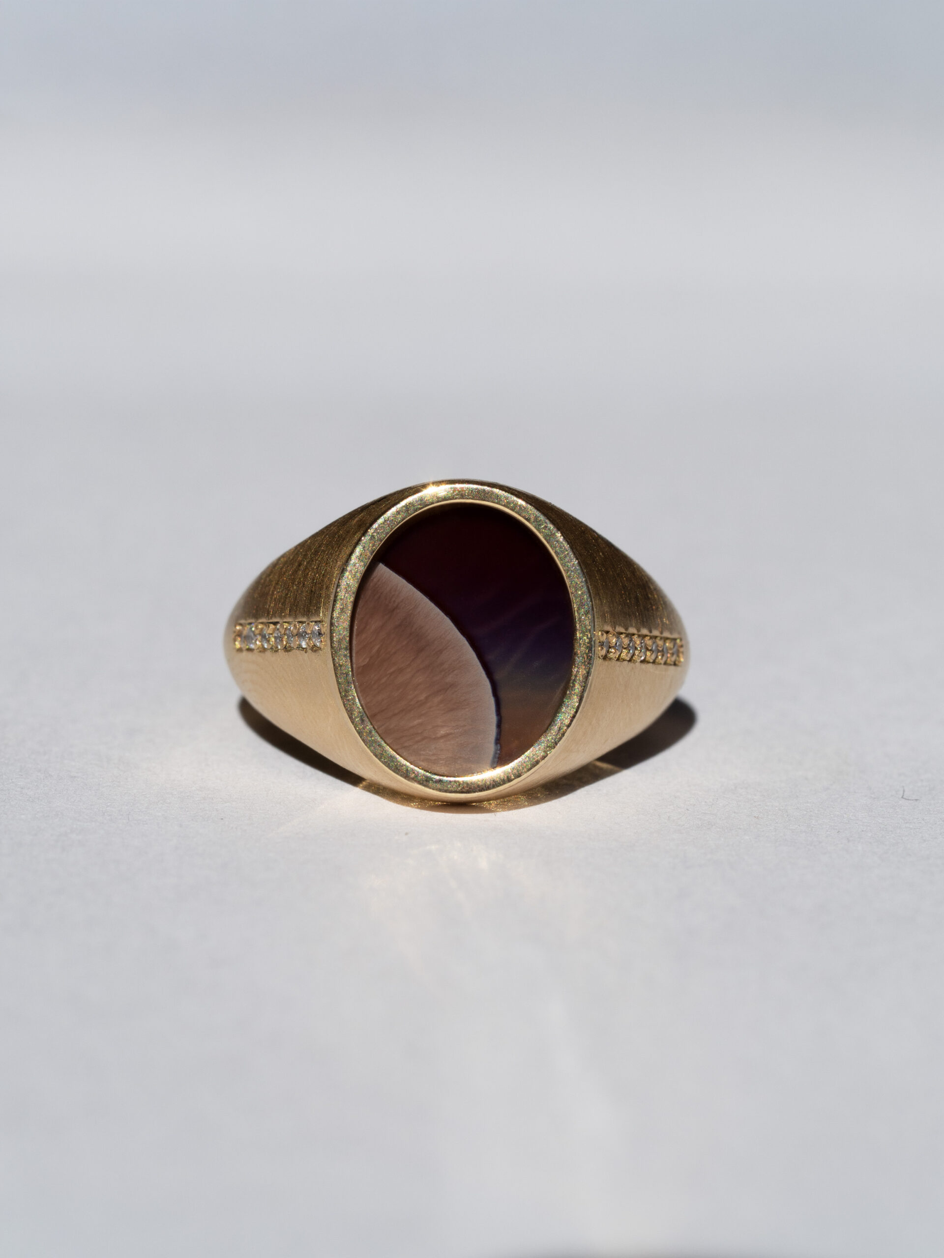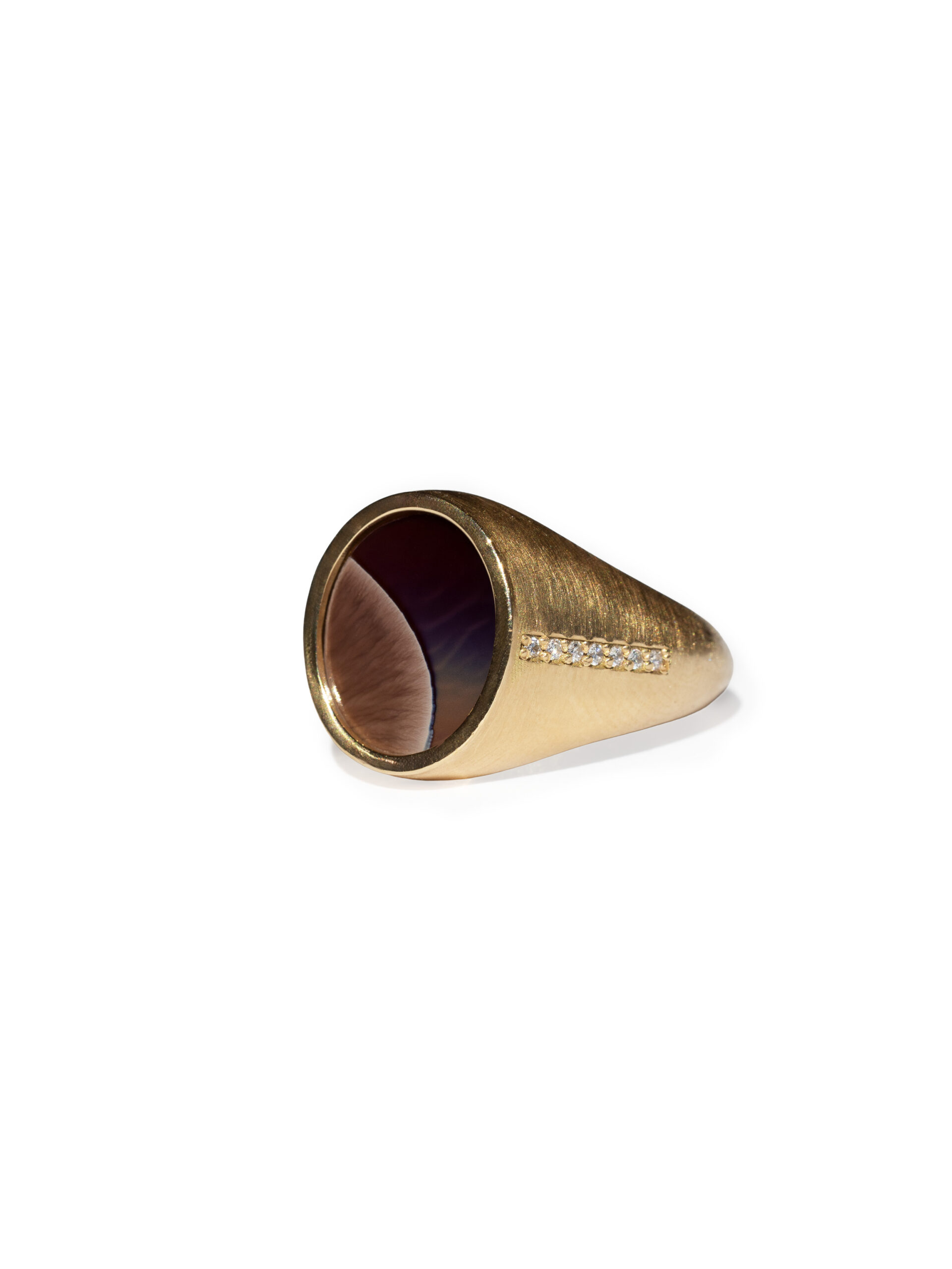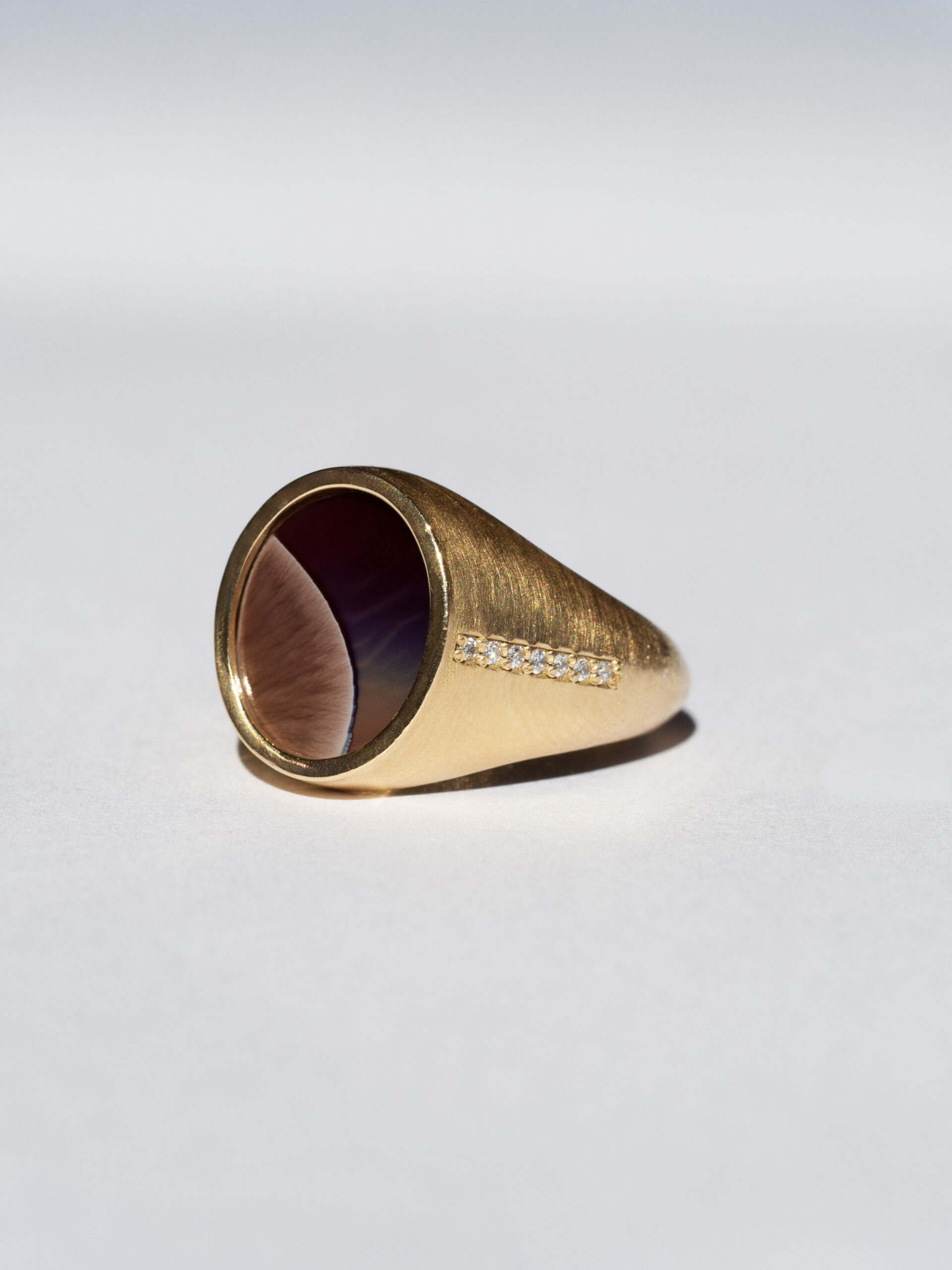 Or 18 carats 5g, diamants 0.09cts, porcelaine cristallisée